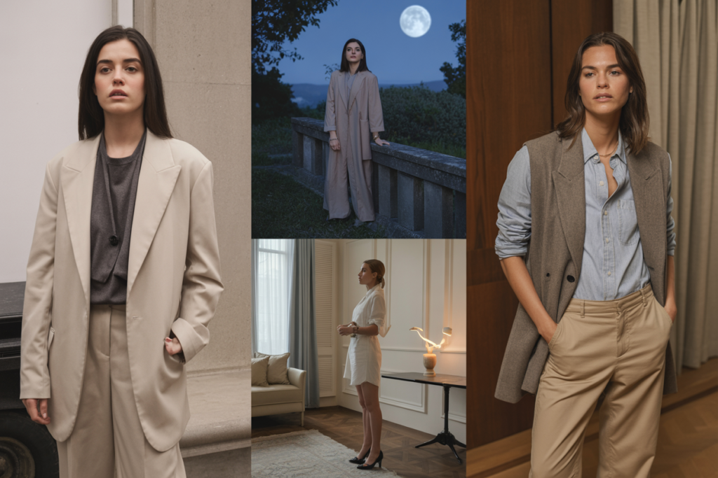 Embodies quiet luxury and timeless sophistication. Characteristics include quality over logos (no visible branding), classic pieces in neutral colors, tailored fits and traditional silhouettes, expensive-looking materials (cashmere, silk, quality leather), and understated elegance.
